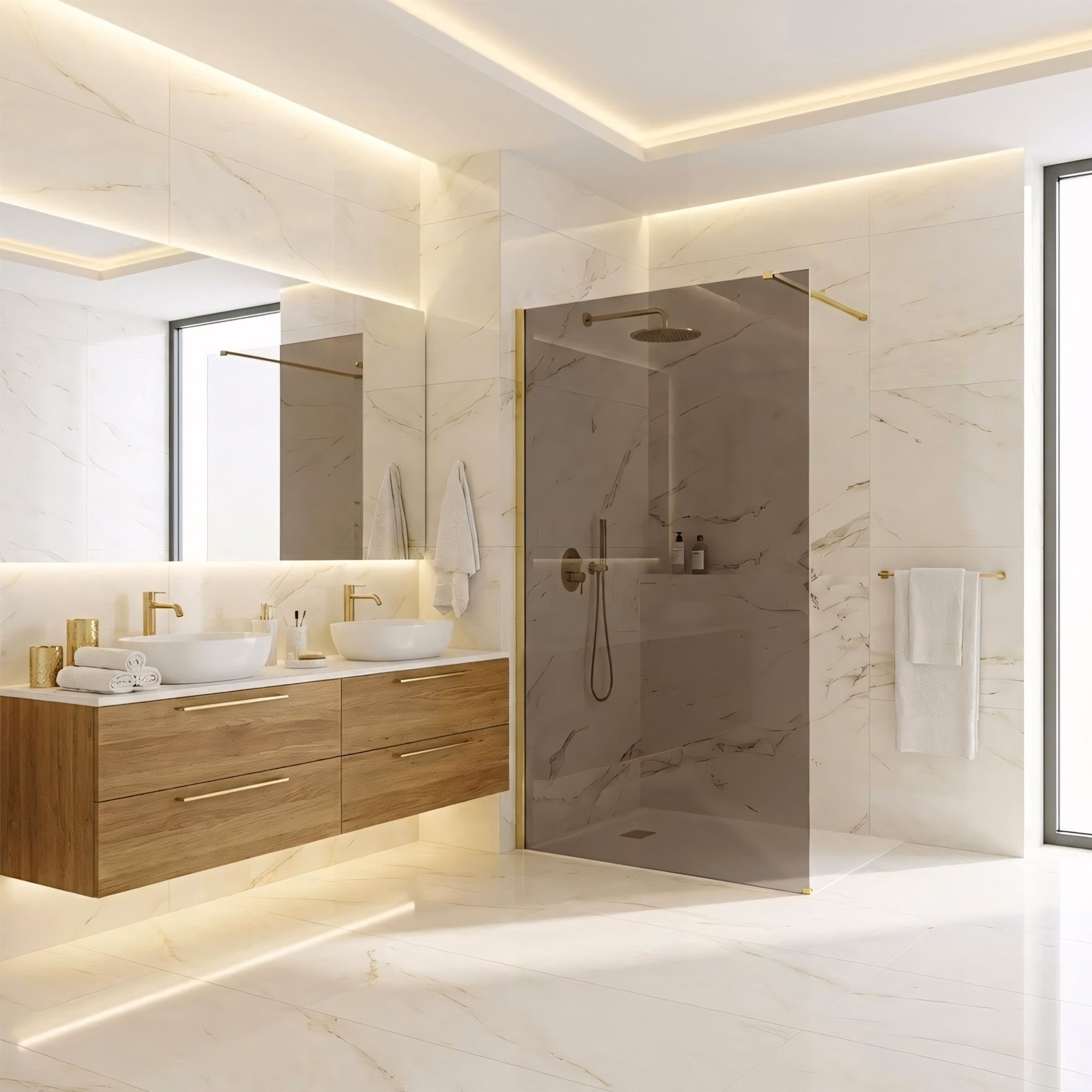 Dank ihrer Vielseitigkeit können sie flexibel im Badezimmer installiert werden und bieten eine elegante Abtrennung, ohne den Raum einzuengen.