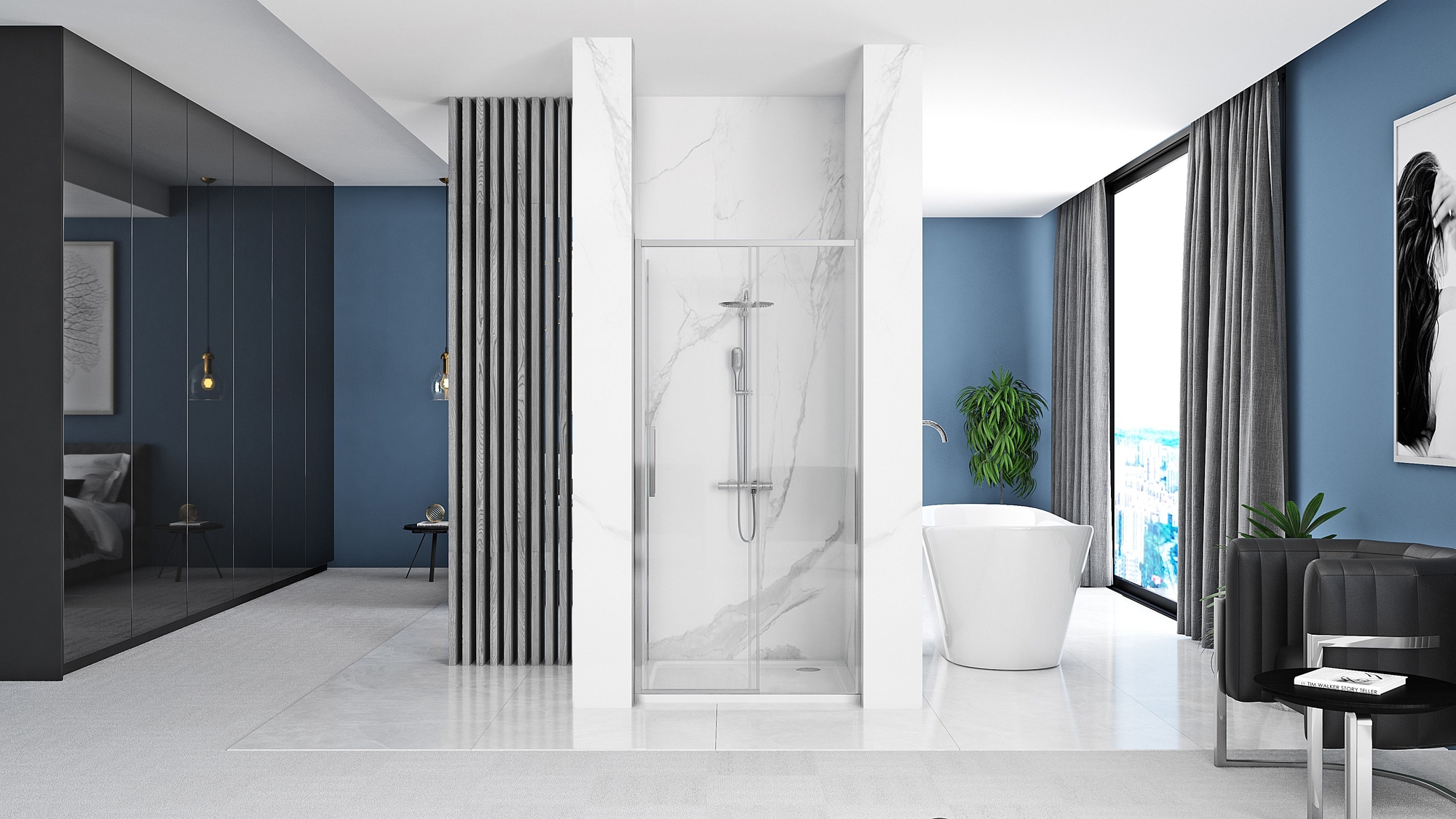 Die Schiebetüren von REA sind universell einsetzbar und können sowohl links- als auch rechtsseitig montiert werden. Durch ihre platzsparende Konstruktion eignen sie sich besonders für kleinere Badezimmer, ohne dabei auf Komfort und Eleganz zu verzichten.